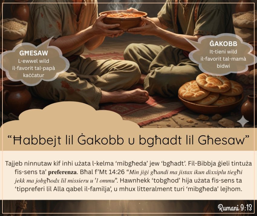“𝐺ħ𝑒𝑠𝑎𝑤 𝑑𝑎ħ𝑎𝑙 𝑔ħ𝑎𝑗𝑗𝑖𝑒𝑛 𝑚𝑖𝑟-𝑟𝑎𝑏𝑎’. 𝑈 𝐺ħ𝑒𝑠𝑎𝑤 𝑞𝑎𝑙 𝑙𝑖𝑙 𝐺̇𝑎𝑘𝑜𝑏𝑏: “Ħ𝑎𝑙𝑙𝑖𝑛𝑖 𝑛𝑖𝑒𝑘𝑜𝑙.. 𝑔ħ𝑎𝑥 𝑗𝑖𝑒𝑛 𝑔ħ𝑎𝑗𝑗𝑖𝑒𝑛…𝑈 𝐺̇𝑎𝑘𝑜𝑏𝑏 𝑞𝑎𝑙𝑙𝑢: “𝐵𝑒𝑔ħ𝑙𝑖 𝑙𝑙𝑢𝑚 𝑖𝑙-𝑝𝑟𝑖𝑚𝑜𝑔̇𝑒𝑛𝑖𝑡𝑢𝑟𝑎 𝑡𝑖𝑒𝑔ħ𝑒𝑘.” 𝑈 𝐺ħ𝑒𝑠𝑎𝑤 𝑤𝑖𝑒𝑔̇𝑏𝑢: “..𝑋’𝑛𝑎𝑔ħ𝑚𝑒𝑙 𝑏𝑖ℎ𝑎 𝑑𝑖𝑛 𝑖𝑙-𝑝𝑟𝑖𝑚𝑜𝑔̇𝑒𝑛𝑖𝑡𝑢𝑟𝑎?”…𝑢 𝑏’ℎ𝑒𝑘𝑘 𝑏𝑖𝑒𝑔ħ 𝑖𝑙-𝑝𝑟𝑖𝑚𝑜𝑔̇𝑒𝑛𝑖𝑡𝑢𝑟𝑎 𝑙𝑖𝑙 𝐺̇𝑎𝑘𝑜𝑏𝑏. 𝑈 𝐺̇𝑎𝑘𝑜𝑏𝑏 𝑡𝑎 𝑙𝑖𝑙 𝐺ħ𝑒𝑠𝑎𝑤 ħ𝑜𝑏𝑧̇ 𝑢 𝑔ħ𝑎𝑑𝑠…𝑰𝒍-𝒑𝒓𝒊𝒎𝒐𝒈̇𝒆𝒏𝒊𝒕𝒖𝒓𝒂 𝑮ħ𝒆𝒔𝒂𝒘 𝒎𝒂 𝒔𝒕𝒎𝒂𝒉𝒂 𝒙𝒆𝒋𝒏.”
