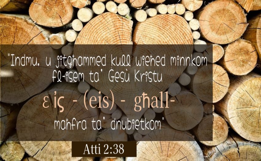 Iฤ-ฤavetta tinstab f’dan il-vers: โ๐ผ๐๐๐๐ข, ๐ข ๐๐๐ก๐ฤง๐๐๐๐๐ ๐๐ข๐๐ ๐ค๐๐ฤง๐๐ ๐๐๐๐๐๐๐ ๐๐-๐๐ ๐๐ ๐ก๐โ ๐บฬ๐๐ ๐ขฬ ๐พ๐๐๐ ๐ก๐ข ๐ฤง๐๐๐- (eis) ๐๐ฤง๐๐๐ ๐ก๐โ ๐๐๐ข๐๐๐๐ก๐๐๐” Atti 2:38